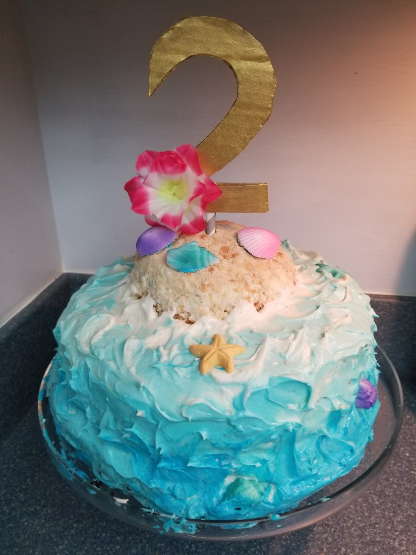 Awwwww. My mom and I made it. So proud. I wanted it to look like an island with water. Goal achieved. Everything was homemade except for the sea shells, I got those from amazon.
