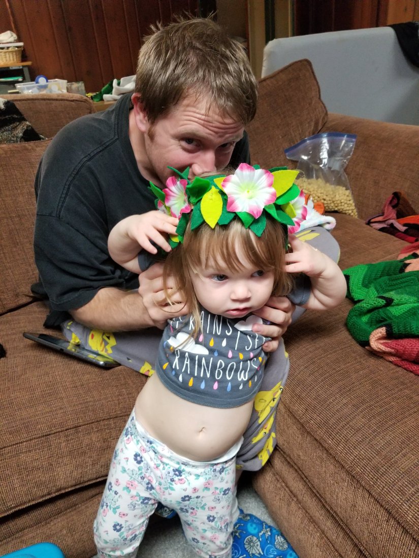 Also I made her a Moana crown but she will only wear it for a couple of seconds at a time. I guess I will have to wear it. Just call me JOana.