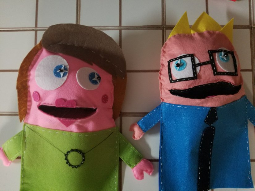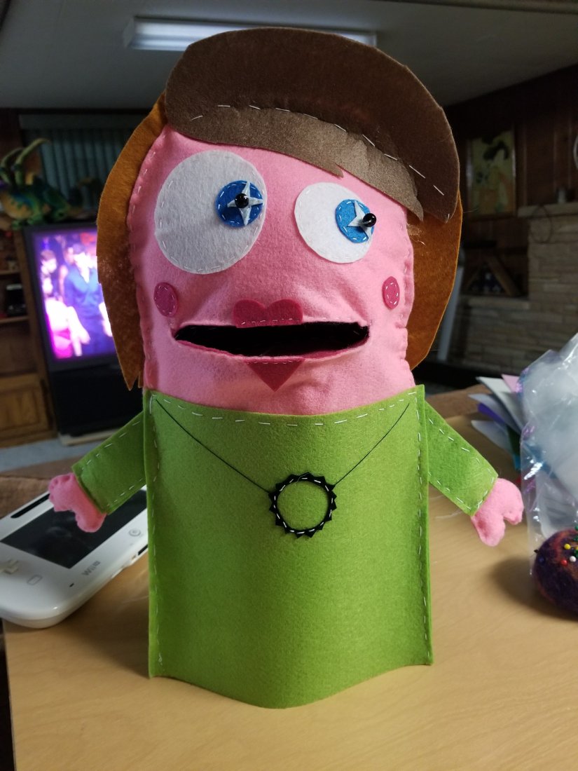 As artsy fartsy people, we tend to make each other presents. Eric actually gave me the idea for this one. During one dinner he was using one of the puppets to convince Iris to eat her peas. He jokingly mentioned that I should make a puppet of him. Boom! Inspiration!